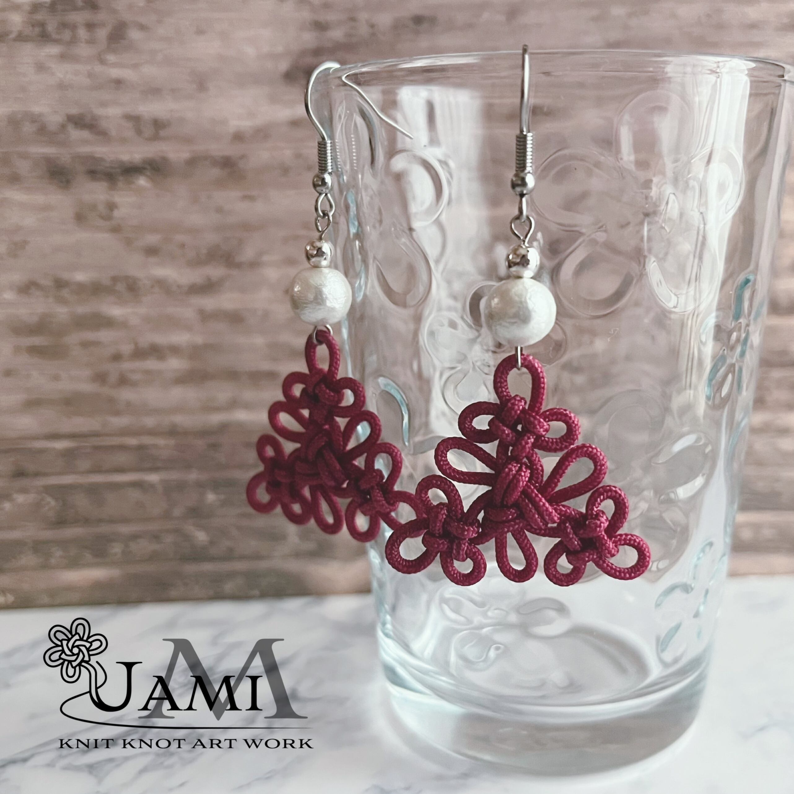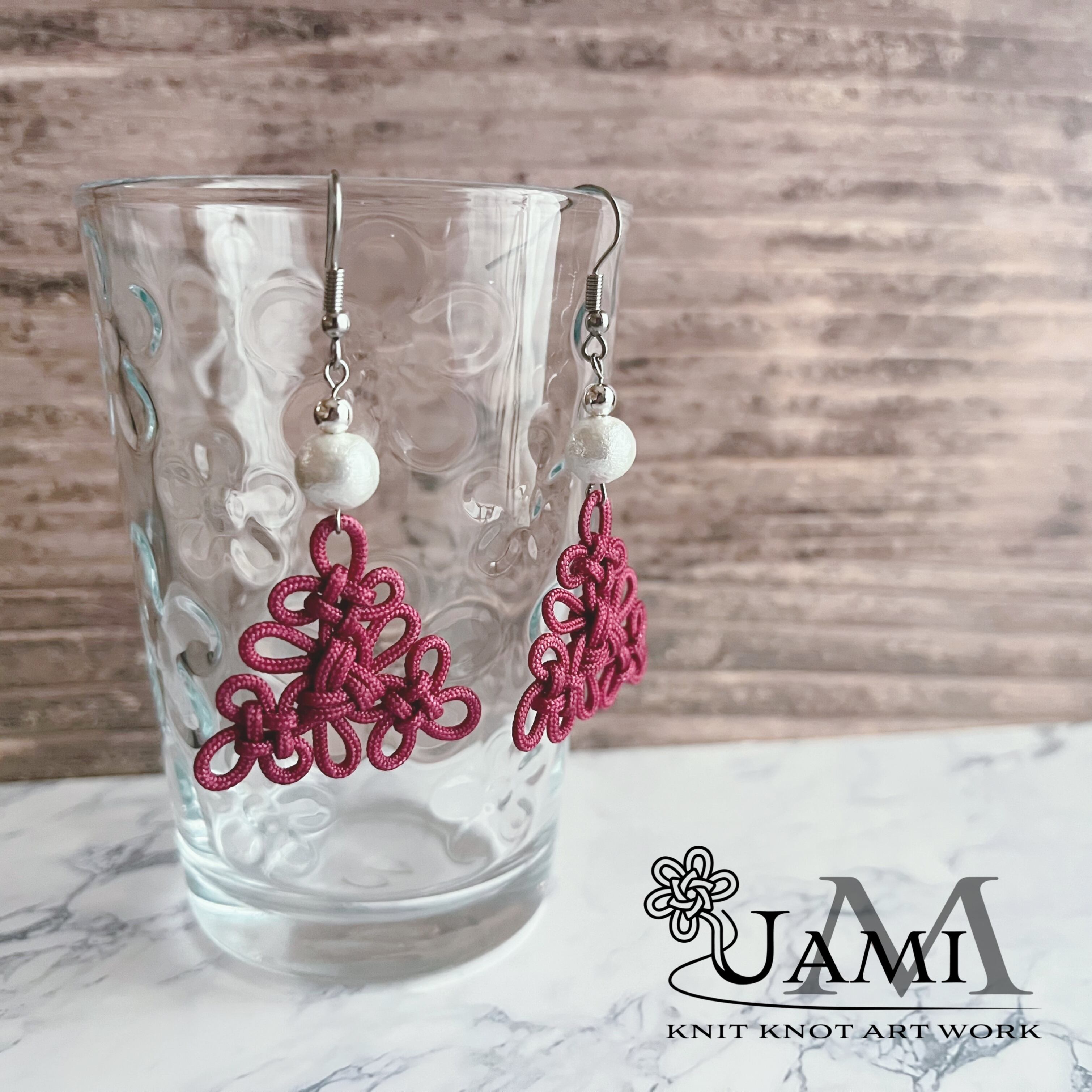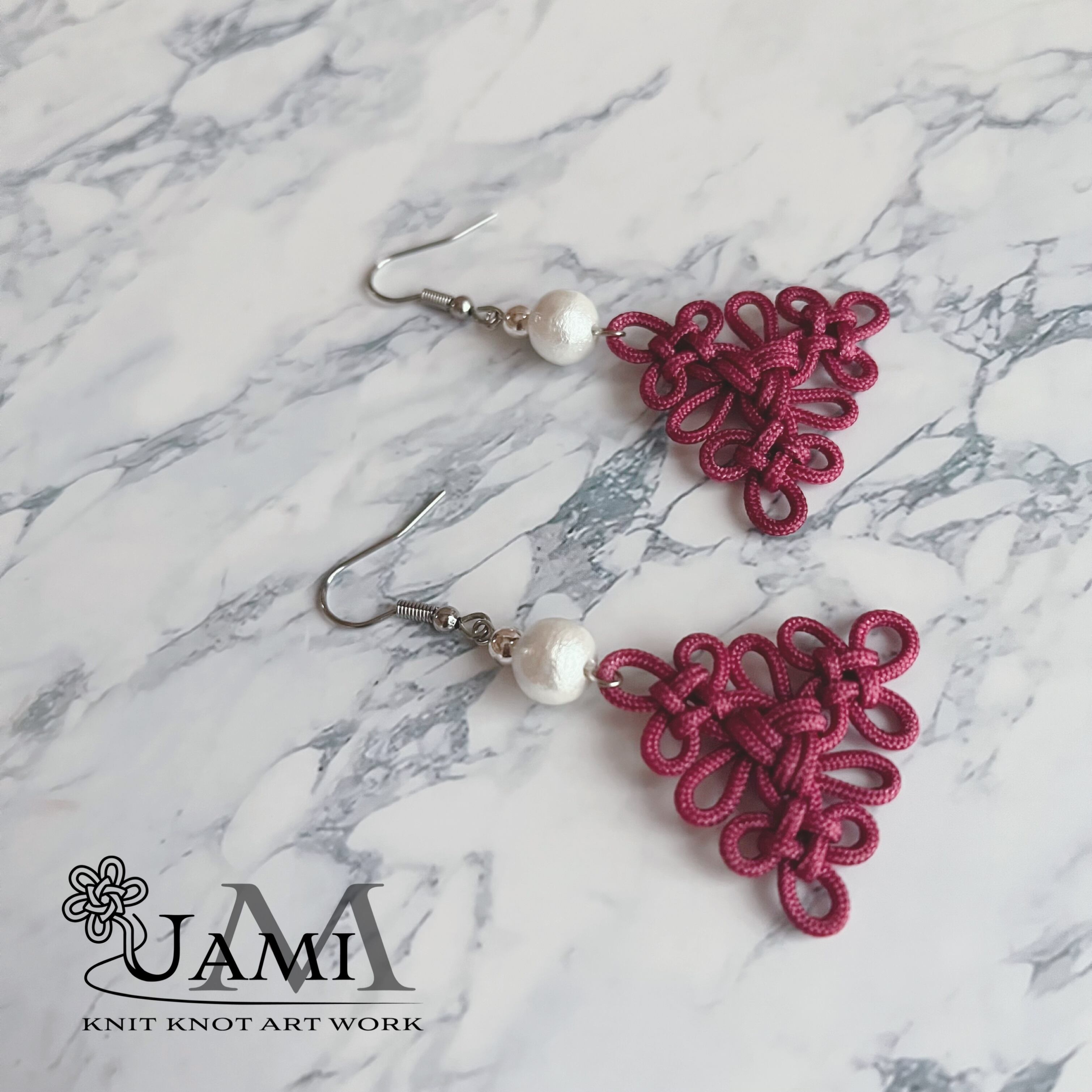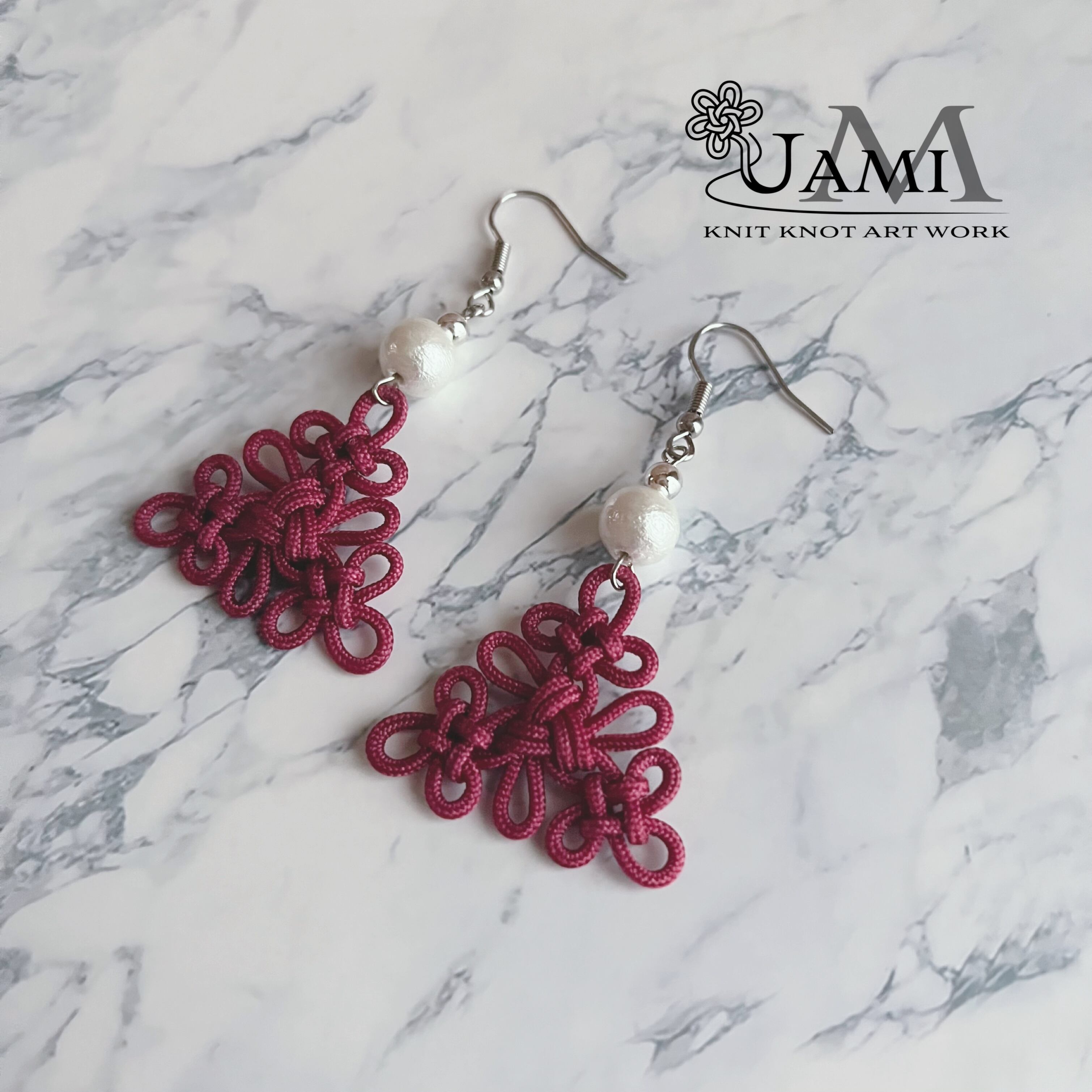 結び目の美しさを引き立てたい!と思い、あえて結びの下には何も付けず、パールビーズをトップに持って来ました。