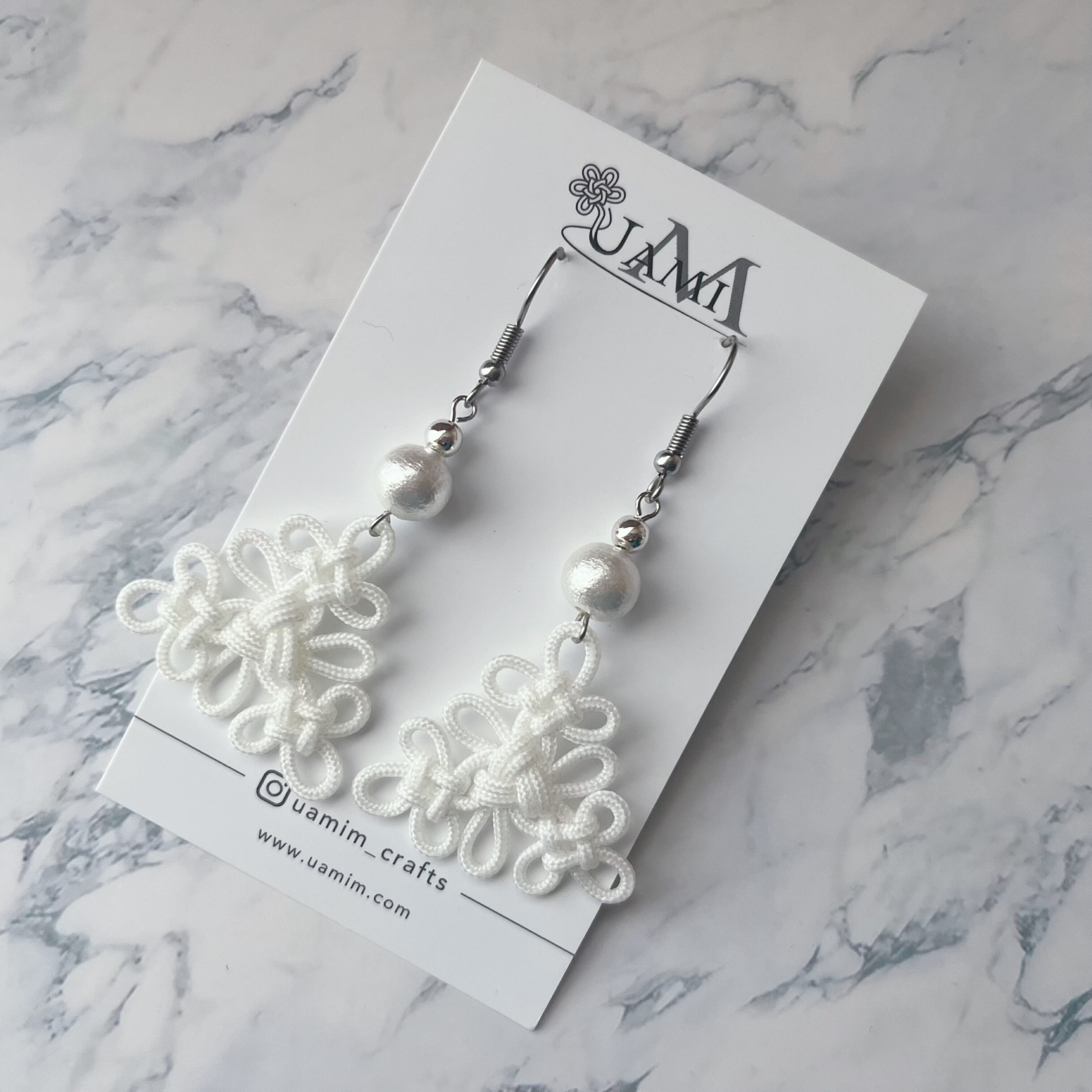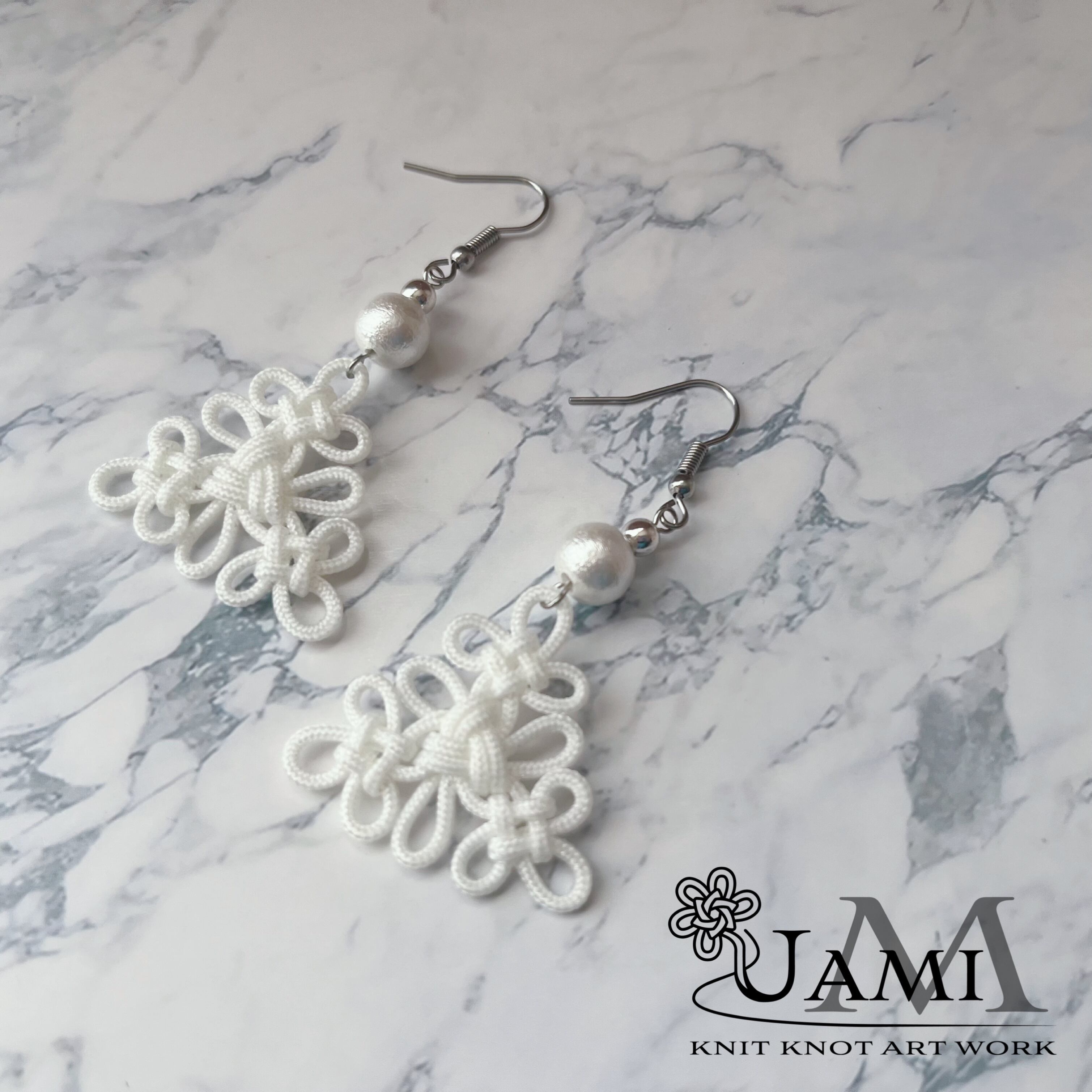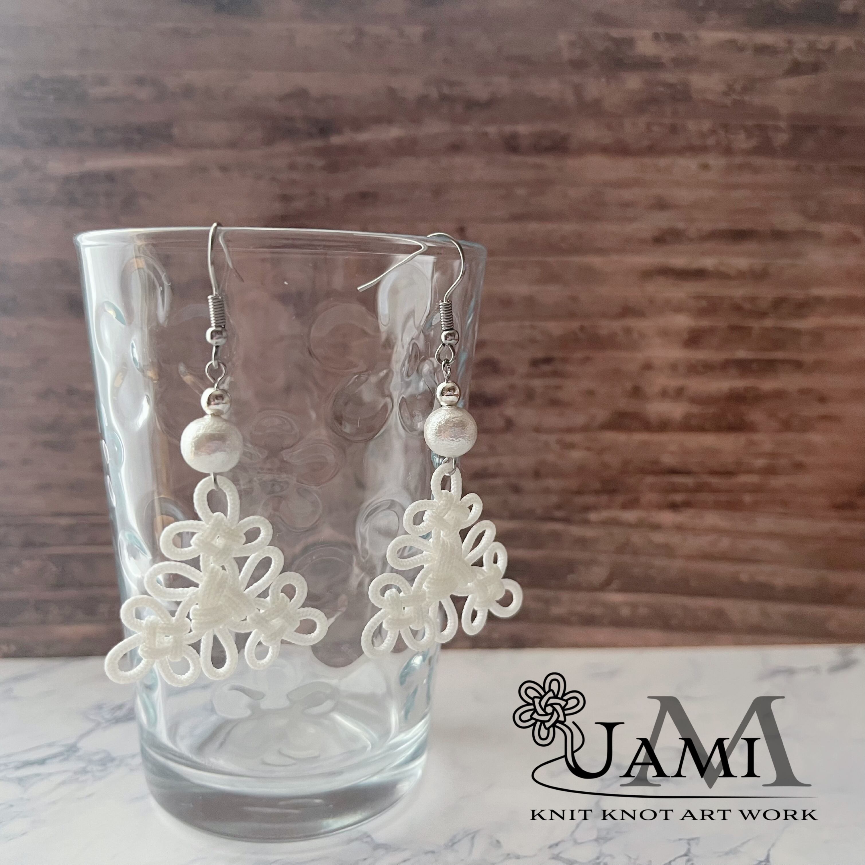 結び目の美しさを引き立てたい!と思い、あえて結びの下には何も付けず、パールビーズをトップに持って来ました。