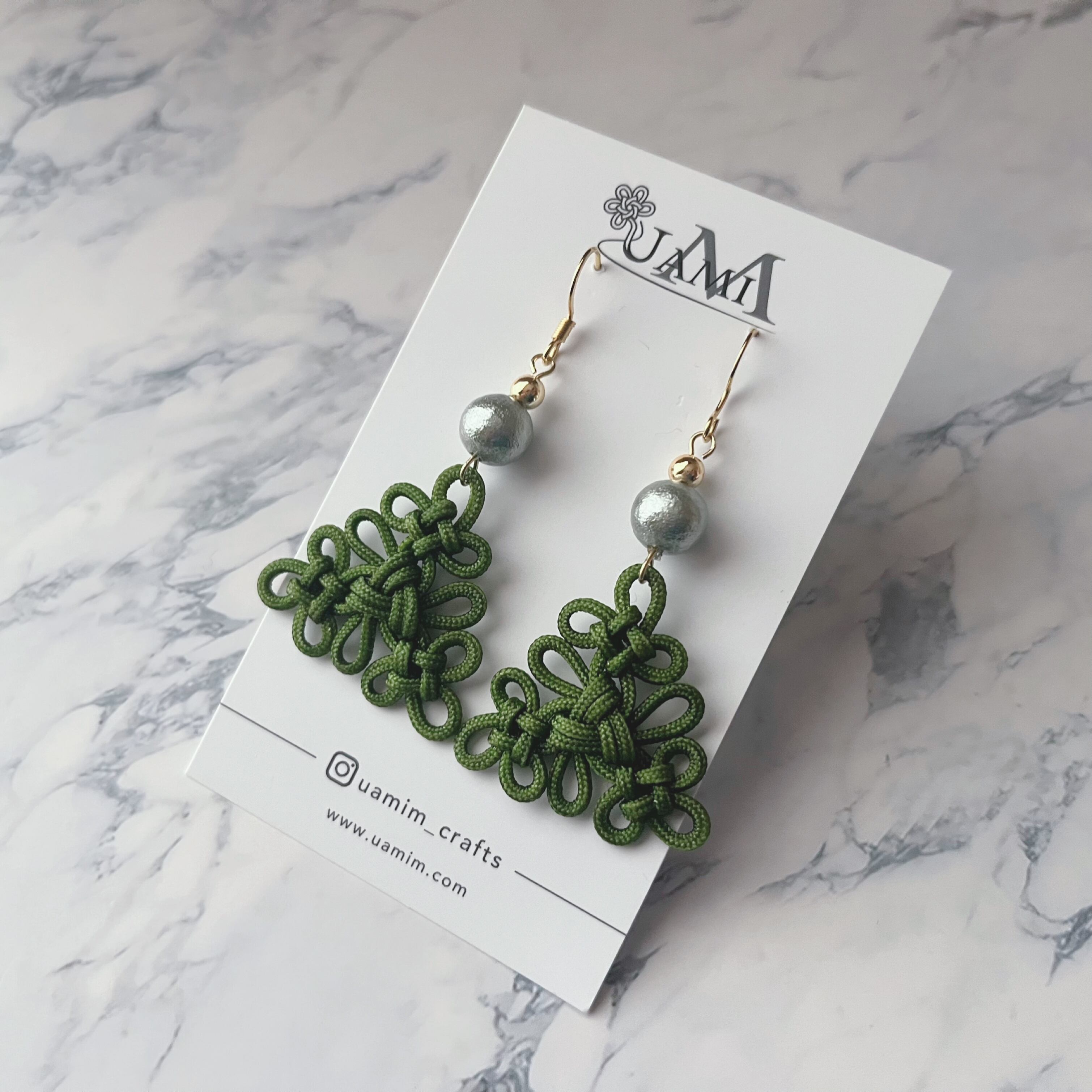 結び目の美しさを引き立てたい!と思い、あえて結びの下には何も付けず、パールビーズをトップに持って来ました。